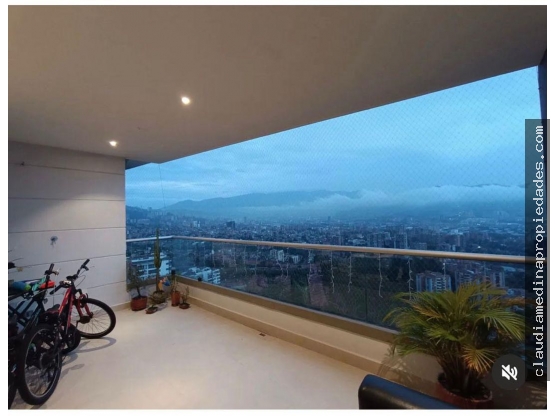 Balcón muy grande con excelente vista hacia la ciudad. Vista granizada.